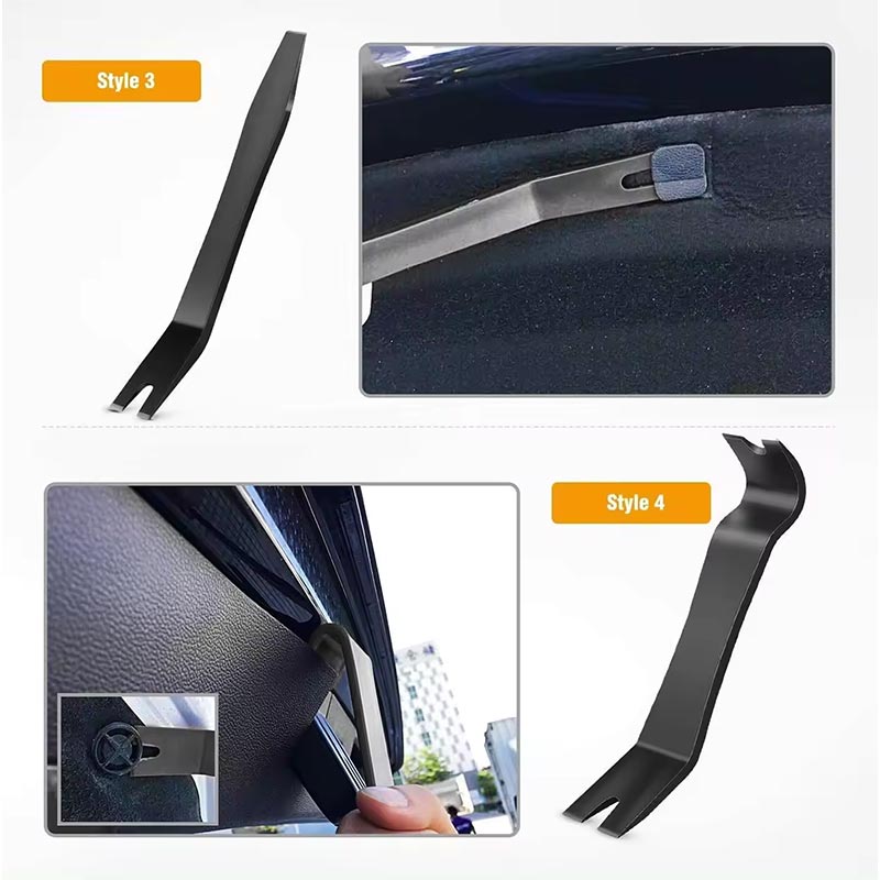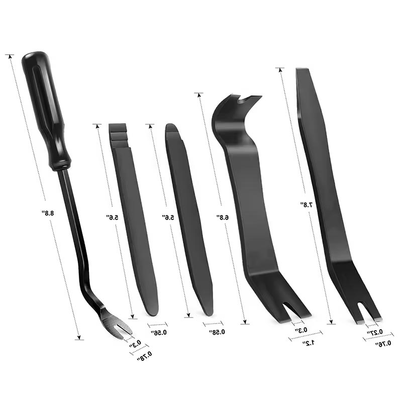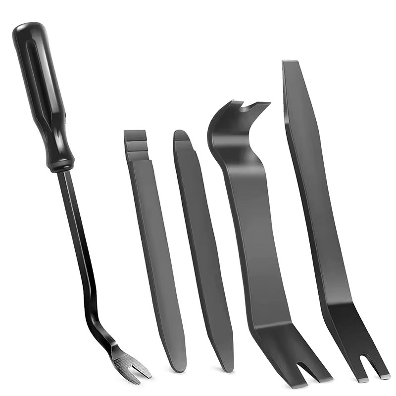 ชุดเครื่องมือถอดตัดแต่งอัตโนมัติของเราทำจากพลาสติกที่ทนทาน รับประกันความแข็งแรงและความยืดหยุ่นสำหรับการใช้งานต่างๆ เครื่องมืองัดที่ไม่มีรอยขีดข่วนได้รับการออกแบบมาโดยเฉพาะเพื่อปกป้องพื้นผิวรถของคุณ ในขณะเดียวกันก็ช่วยให้สามารถถอดอุปกรณ์ตกแต่ง คลิป แผง และส่วนประกอบด้านเสียงออกได้อย่างง่ายดาย ชุดเครื่องมือนี้ประกอบด้วยเครื่องมือที่แตกต่างกันห้าแบบ ซึ่งแต่ละแบบได้รับการออกแบบมาสำหรับงานเฉพาะ ทำให้เป็นโซลูชันที่ครอบคลุมสำหรับมืออาชีพด้านยานยนต์