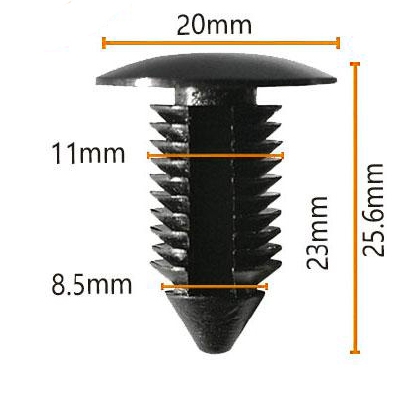 ความยาวรวมของตัวยึดคือ 25.6 มม. ความกว้างคือ 20 มม. และความสูงของศีรษะคือ 11 มม.
