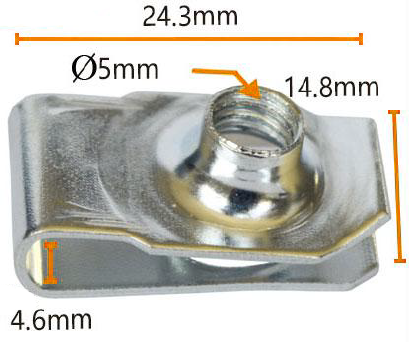 ตัวยึดมีขนาดโดยรวมที่แม่นยำวัดความกว้าง 24.3 มม. และความสูง 14.8 มม. ทำให้มั่นใจได้ว่าพอดีกับจุดยึดบนรถของคุณ นอกจากนี้ความยาว 4.6 มม. ที่กล่าวถึงที่ด้านล่างของภาพอาจอ้างถึงมิติที่สำคัญของส่วนที่เฉพาะเจาะจงโดยเน้นความเป็นมืออาชีพและความแม่นยำของผลิตภัณฑ์ต่อไป